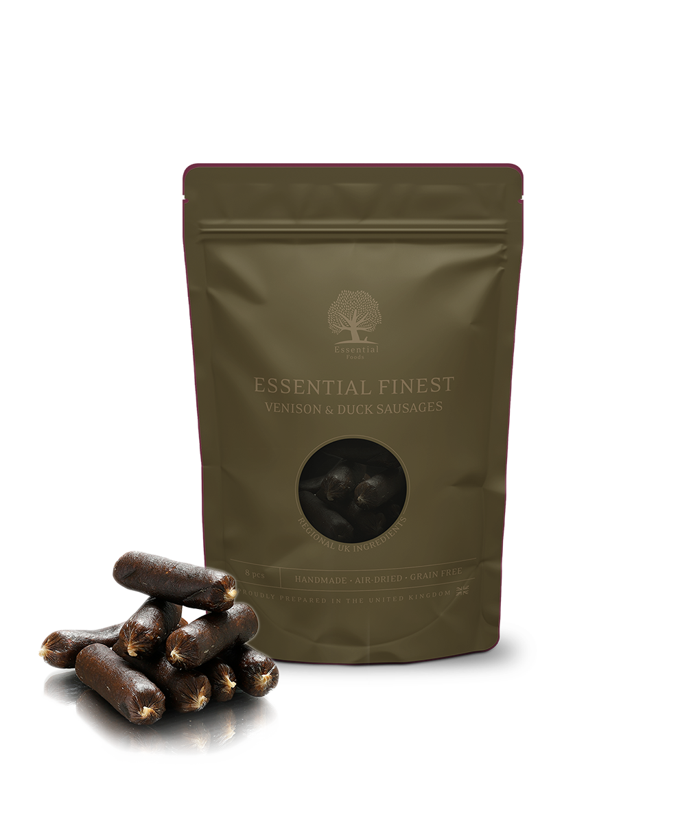 When only the BEST is good enough. ESSENTIALS FINEST is our range of luxury treats using only the best ingredients like our meals. Super tasty, well maybe a bit too much but we can't help it. 8 snack sausages made with venison and duck. Air-dried and 100% handmade in England.